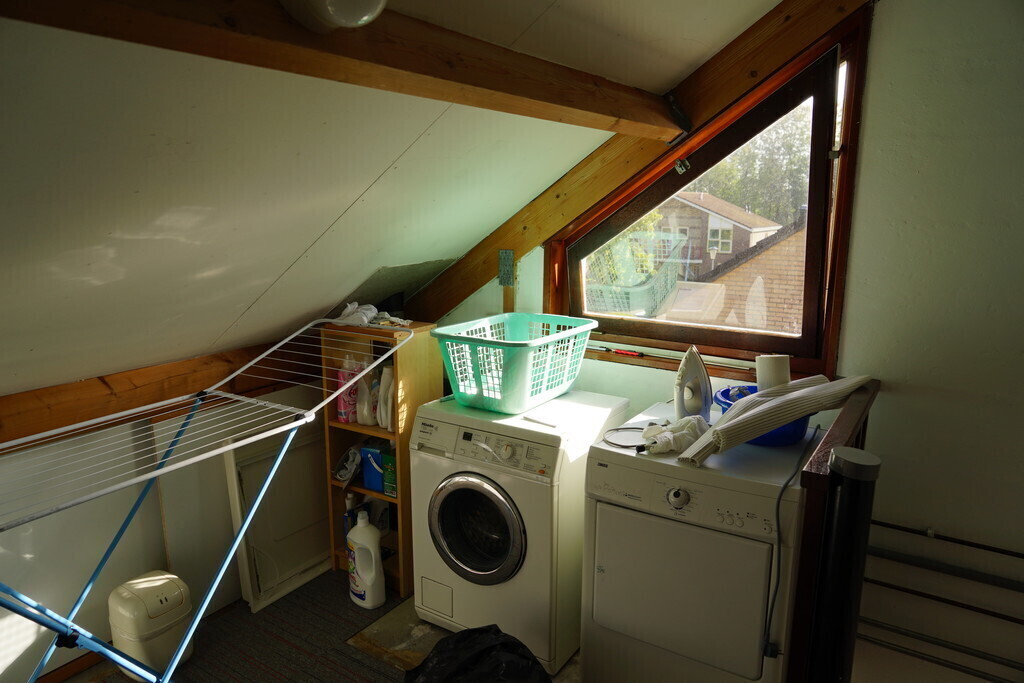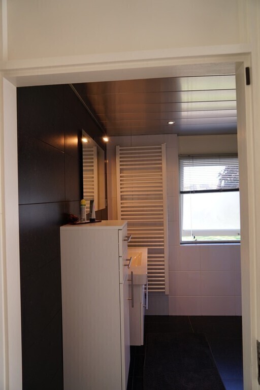 Eerste verdieping: overloop, drie kamers en moderne badkamer met toilet, wastafel en ruime douche. Twee hobbykamers, een slaapkamer met tweepersoonsbed (160 x 200) Tweede verdieping: overloop met wasmachine en droger. Ruime slaapkamer met tweepersoons bed (140 x 200)