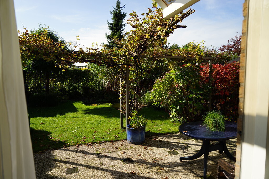 Besloten tuin, gelegen op het zuiden. Tuinhuisje. De garage en berging met o.a. drie fietsen, waarvan 2 electrisch.