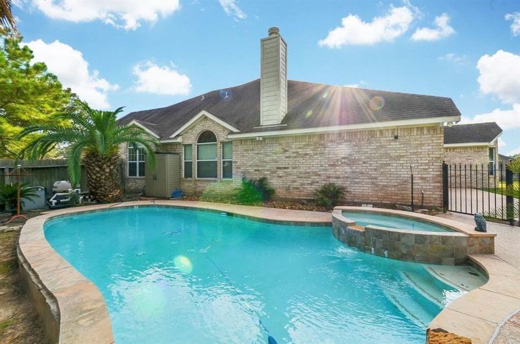 Outside you will find a swimming pool with a small water fall for cooling off in the Texas heat! And in case you need to heat up a hot tub!