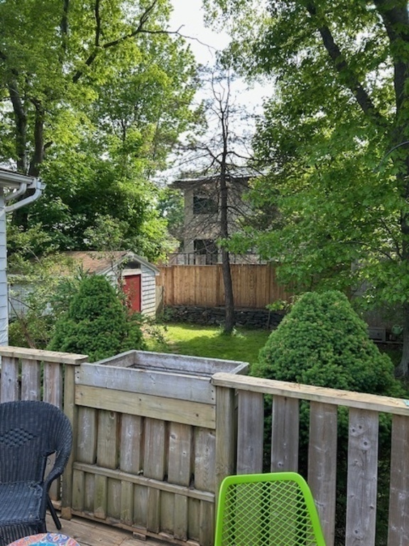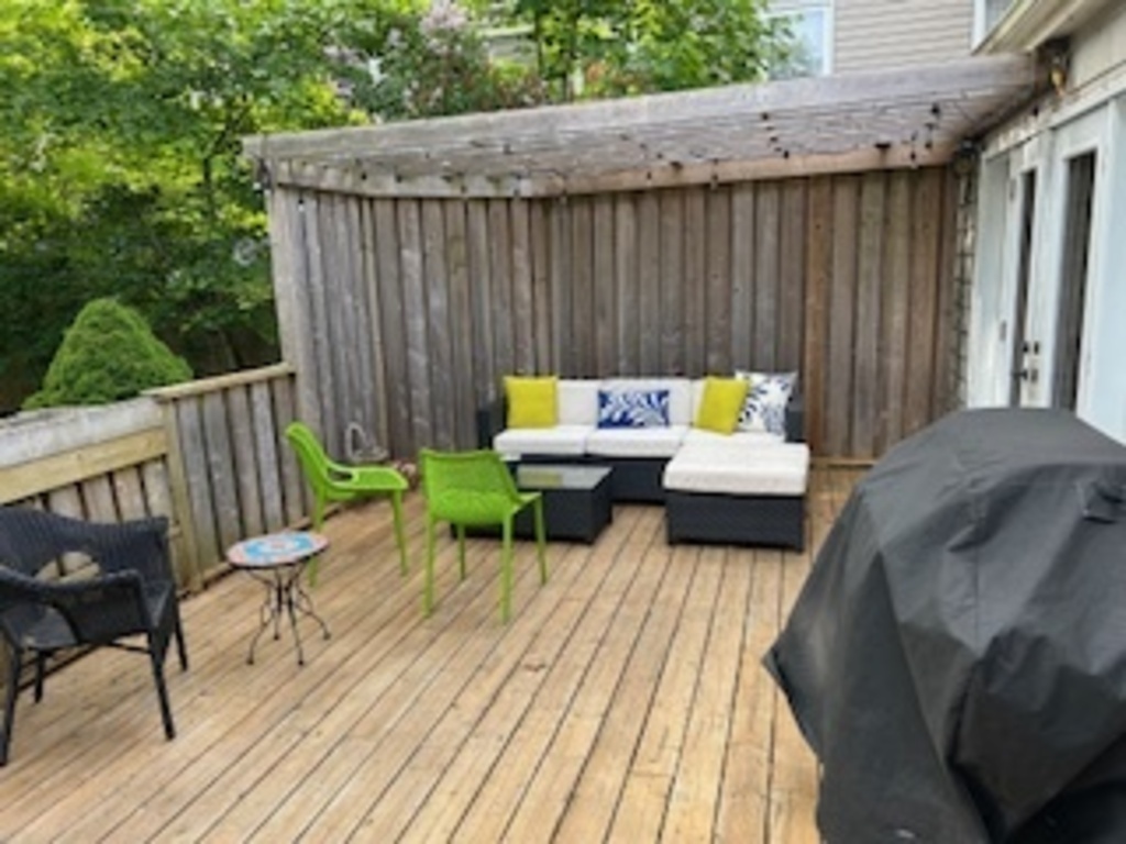 We live in a 2 story (3 bedroom, 3-bath) house on a quiet, residential street. Our backyard is quiet and includes a back deck and BBQ as well as large green space & studio. Our kitchen & main bathroom & family room have been fully renovated.