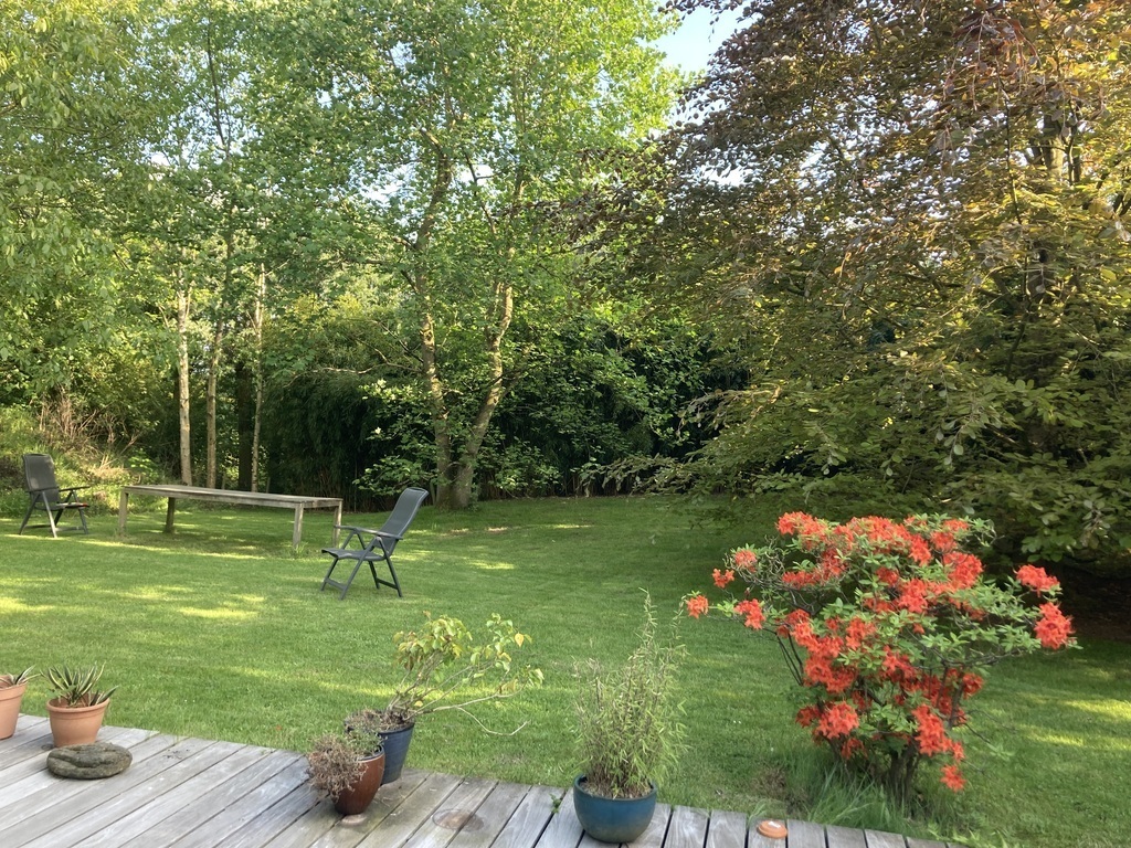 Our house is situated in Breda, a large historical city in the south of The Netherlands. It is situated in a in a small farmers town called "Princenhage" 2 km from the centre of Breda and has its own small and cosy centre with shopping facilities, restaurants and cafe's. The house lies in 2150 sq.m. in a park like garden with fruit trees and berries to be picked in autumn. The terrace of 100 sq. m. on the south and has a large dining table and chairs. Lounge chairs and table can be placed anywhere on the terrace or in the garden in the sun or in the shade under the trees.