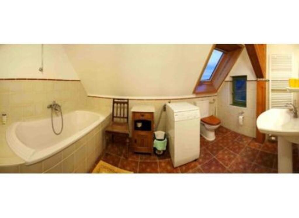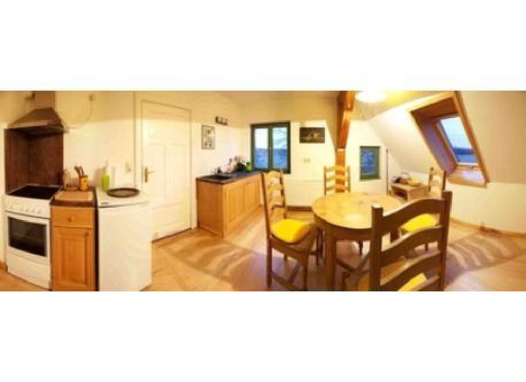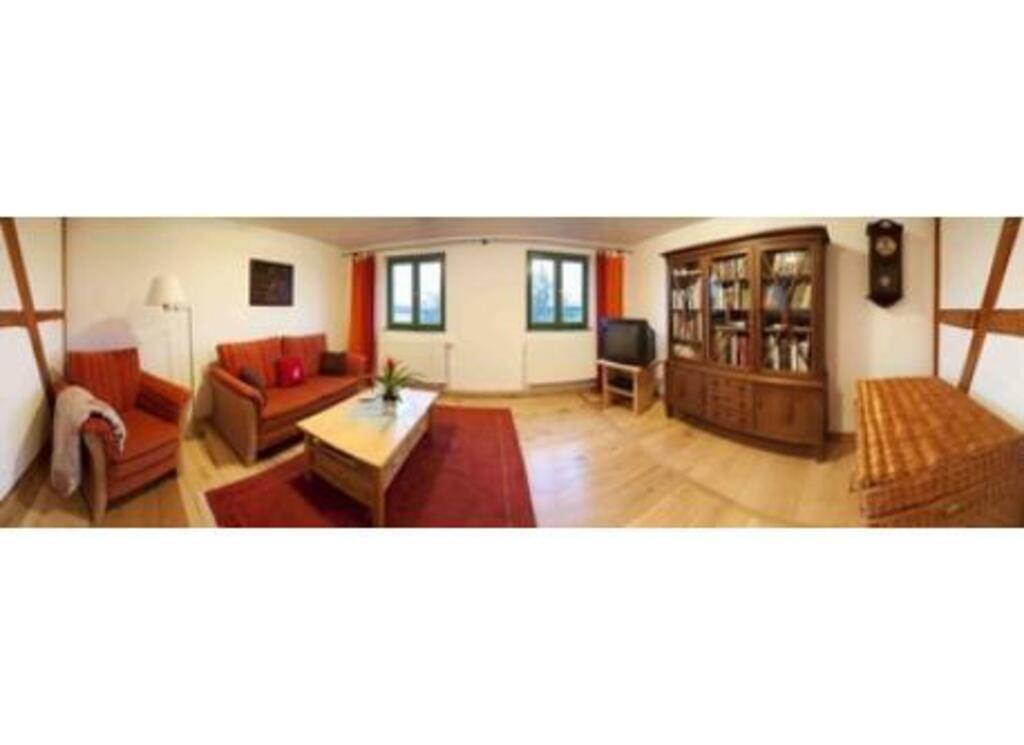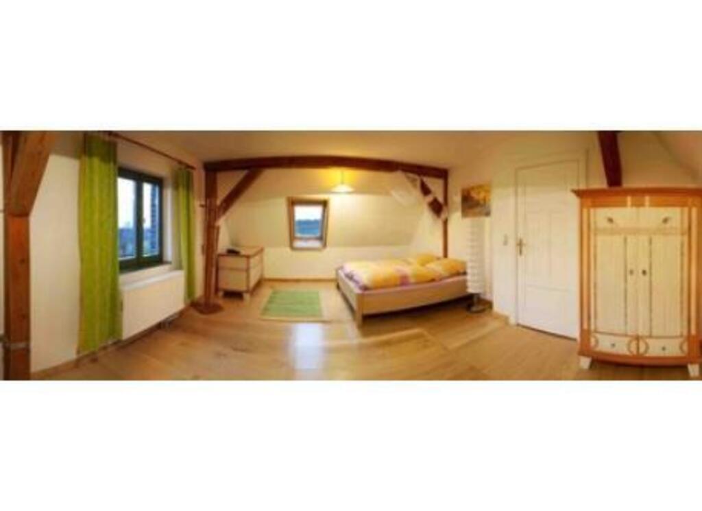 We live in a separate old farm in the countryside.Our house is a restored barn with thatched roof. For guests or exchange-partners we have a flat in the 2nd flor of brick-house (main foto) with kitchen, bathroom, one double bedroom, two 1-bedrooms and one livingroom.