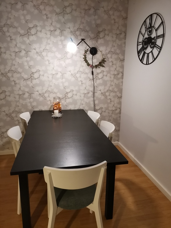 There are many shops (a shopping center), some restaurants and other services nearby within a walking distance. There are also really nice parks and forests around here where you can go walking or running. Nearest frisbee golf route is just 2,5 km from the apartment, as well as the nearest swimming place (a pond).