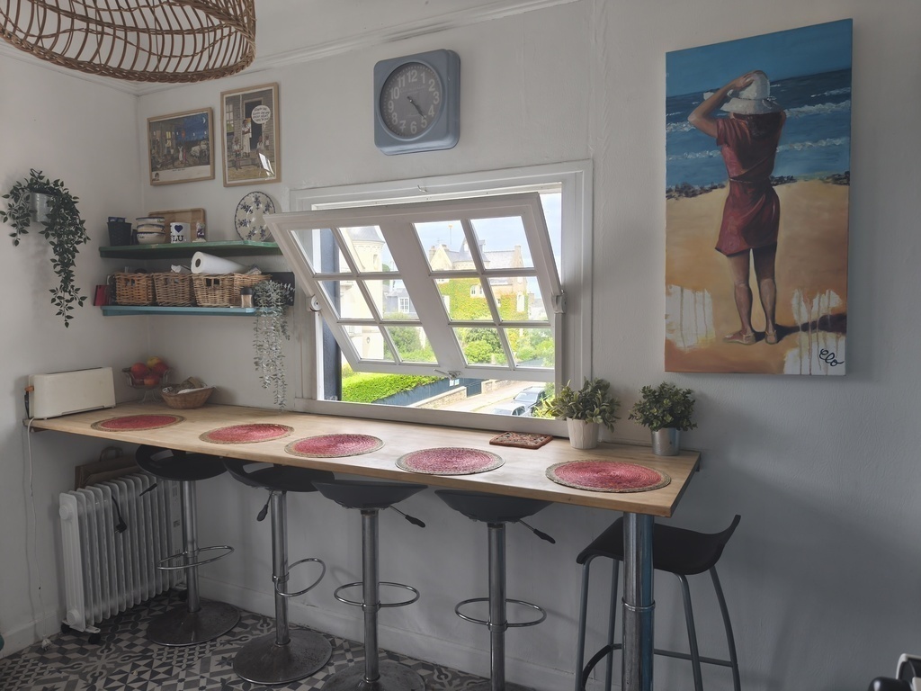 Two superb beaches, a welcoming hut on the beach for a drink or a meal feet in the sand, a small superb and authentic village, shops, a golf course, tennis lessons, a sailing school, a miniature golf course, a surf school, coastal paths with a magnificent view, markets, nice little restaurants, islands where you can picnic and spend the day (Cézembre Island and Ébihiens Island), dolphins, and also many tourist sites nearby: St Malo, Dinard, Dinan, Cap Fréhel, Fort Lalatte, Mont St Michel but also small adorable beaches to discover and there are many !!!