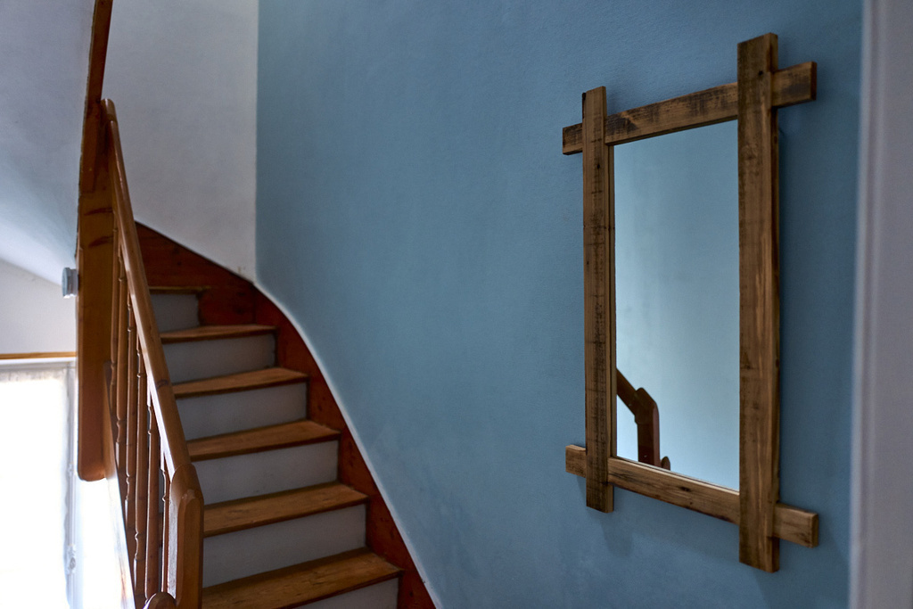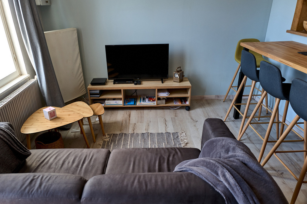 The ground floor is bright and airy, with east-west windows on both sides of the house. It comprises the living room with flat-screen TV (a wired connection is available for DTT reception with some news channels while we wait for the fibre connection, which is imminent) and DVD player with some DVDs, the dining table and opening onto a spacious, fully-equipped kitchen (fridge/freezer, oven, ceramic hob, Nespresso coffee machine, kettle, dishwasher, microwave, mini food processor, etc.). A small courtyard of 10 m2 to the rear of the kitchen allows you to eat outside in summer.