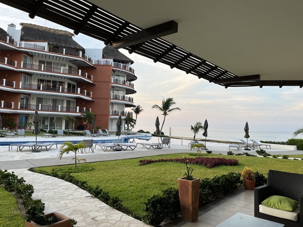 This is a resort with 8 condominium buildings and some Villas. We have a clubhouse with a restaurant, bar, workout room, library, Palapa for yoga and functions, Tennis courts, Pickleball courts, 3 swimming pools. All right on the ocean with miles of walkable ocean front and beautiful sunrises and sunsets. It's a warm welcoming community. The drive into Puerto Escondido is 25 minutes.