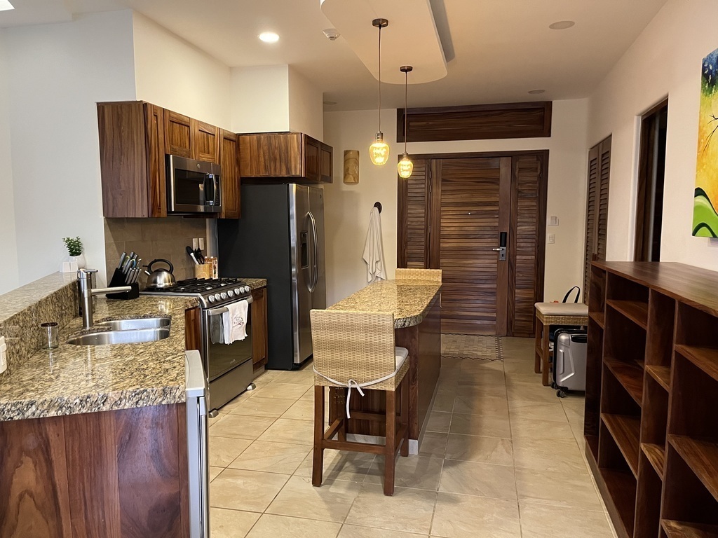 The resort complex has following amenities - 3 pools, outdoor restaurant & bar, tennis & pickleball courts, well equipped workout room, yoga room, palapa, library, and full service housekeeping if desired. There is a security gate.