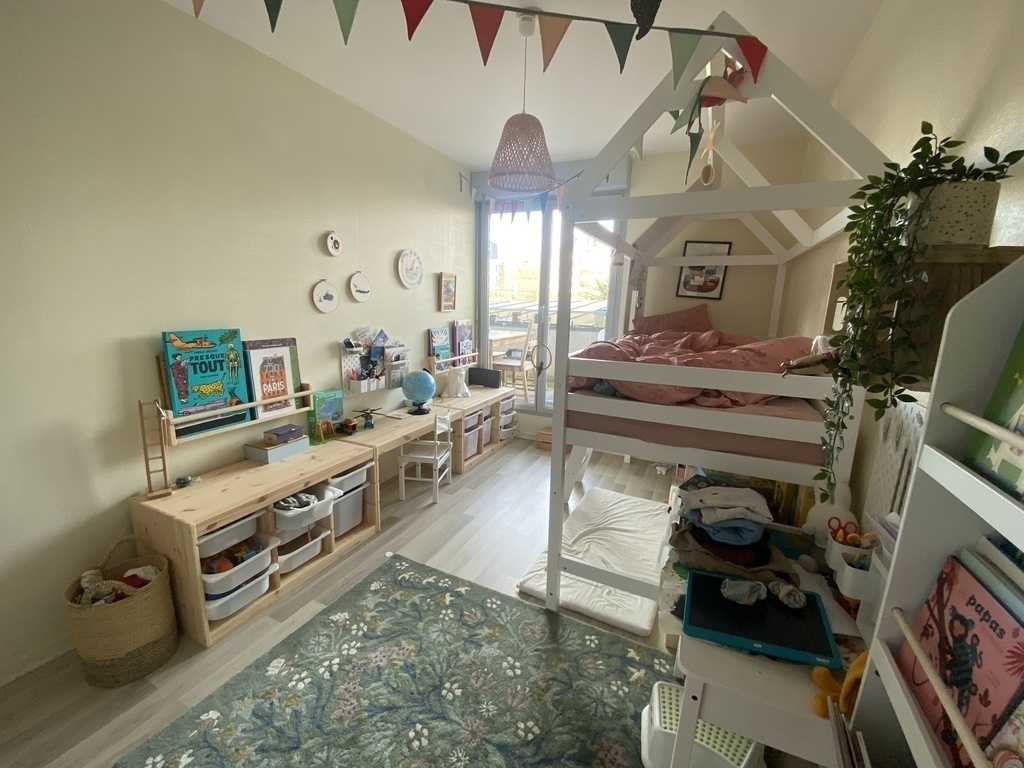 The kids each have their own bedroom with a lot of toys and a bunk bed in the bigger one. The bed for the youngest one can be transformed in a one-place child bed.