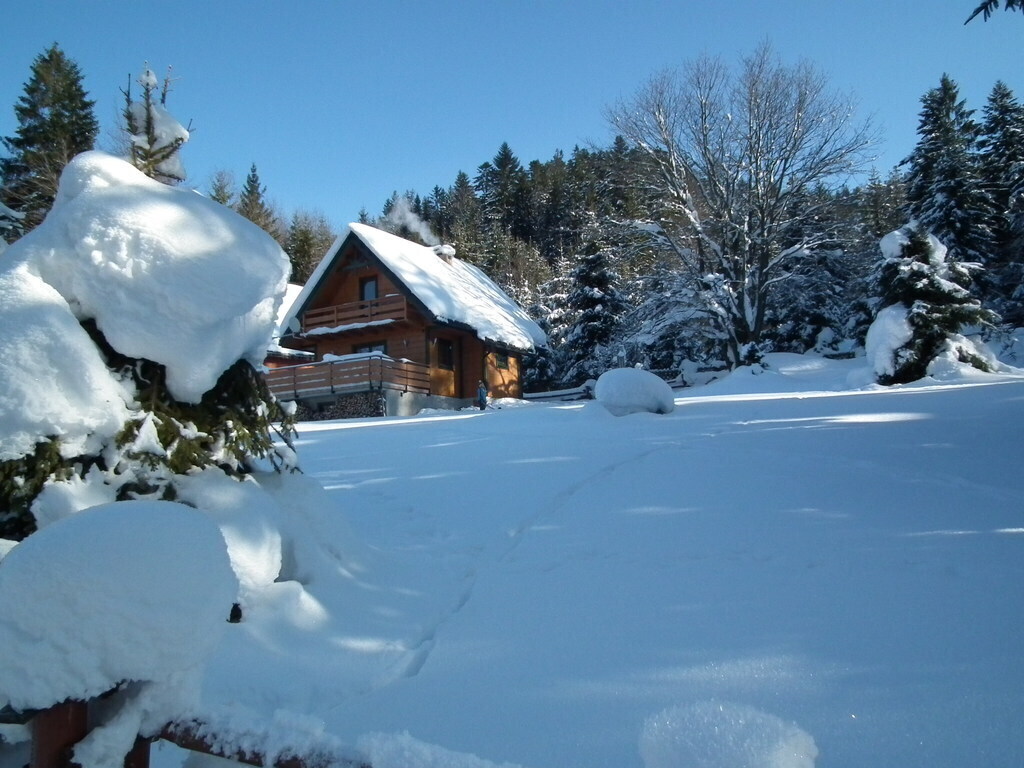Das Haus hat eine Aussichtsterrasse und einen Keller und wird durch einen Kamin beheizt. Der Herd und warmes Wasser werden mit Strom versorgt.